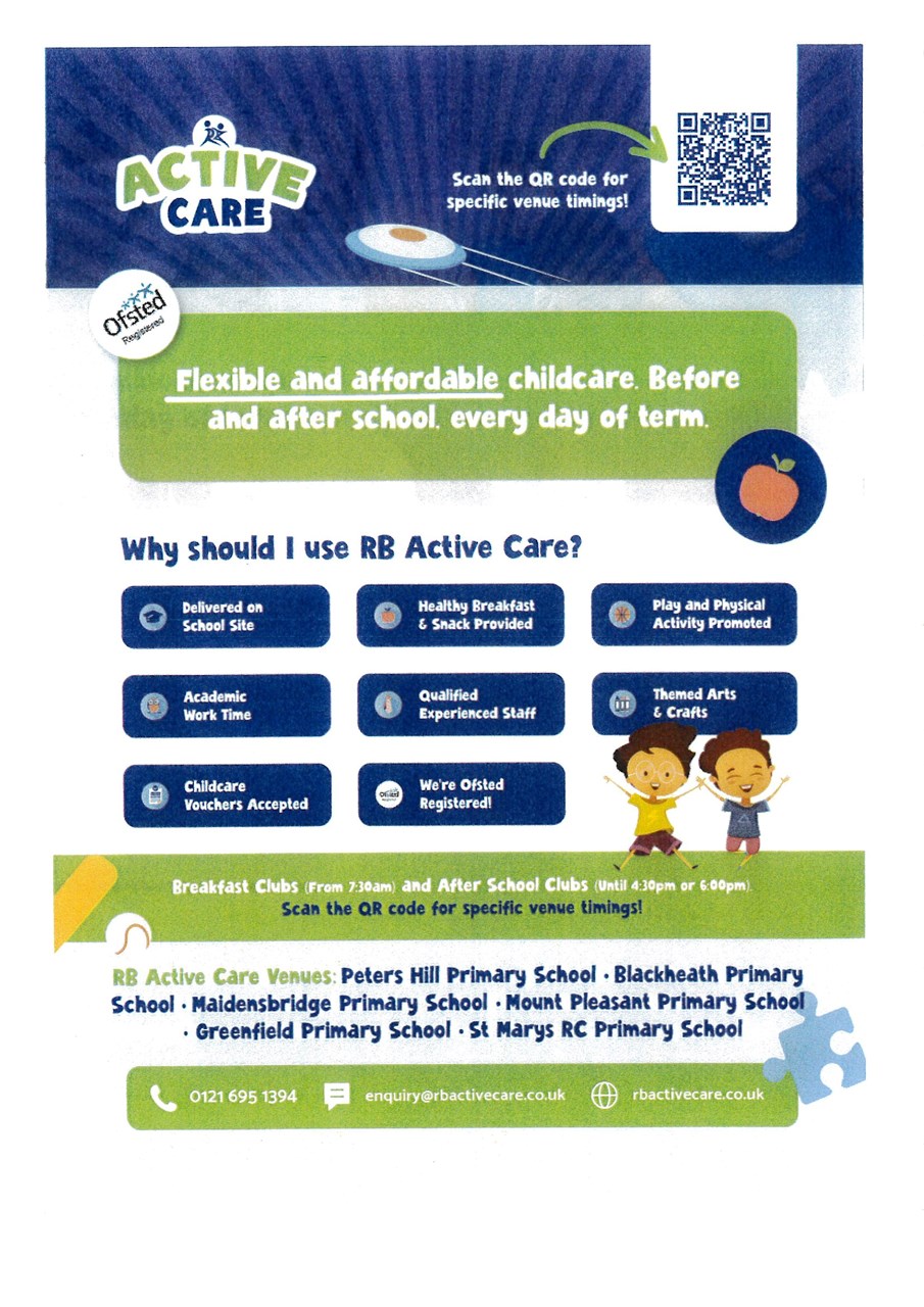 Wrap Around Care: We offer Breakfast and after School Clubs provided by RB Active Care.